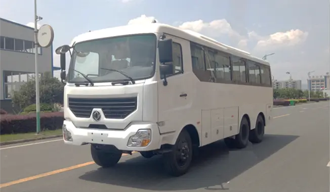 Engineered for the toughest environments, the Dongfeng EQ6830ZT6D2 is a heavy-duty 6×6 off-road bus designed for mining, oil fields, and forestry applications. Powered by a reliable Dongfeng Cummins 6.7L engine (230HP), it delivers exceptional torque (900 N.m) to handle steep gradients and rough terrains with ease.